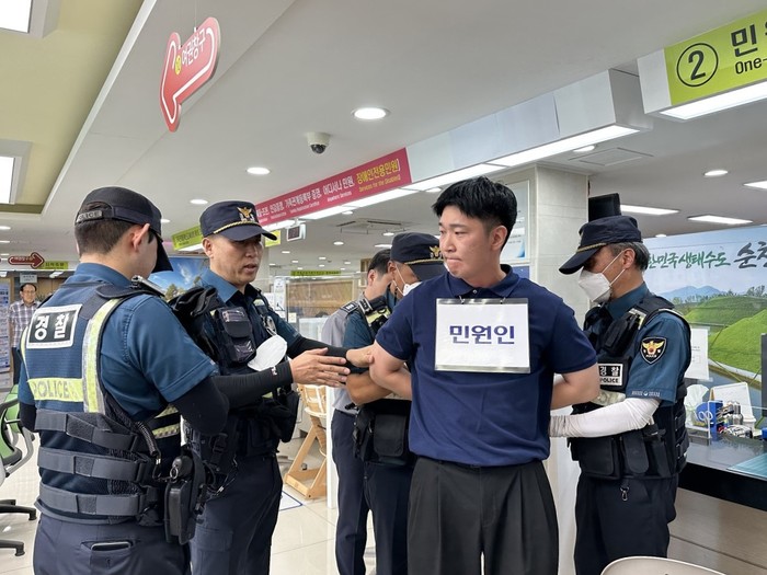 [전남=프레스뉴스] 강래성 기자= 순천시(시장 노관규)는 22일 시청 종합민원실에서 순천경찰서와 합동으로 민원인의 폭언‧폭행 등 특이민원 발생 비상상황에 신속히 대응하기 위한 모의훈련을 실시했다.