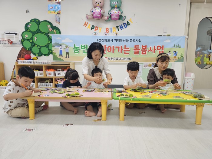 ▲합천군육아지원센터(센터장 권윤숙)는 지난 14일 여성친화도시 지역특성화 공모사업의 일환으로 ‘찾아가는 농번기 돌봄사업’을 운영했다고 밝혔다. (사진=합천군) |