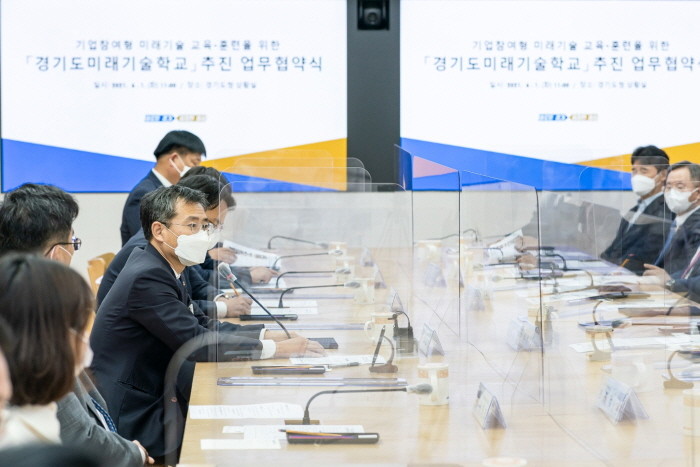 경기도와 경기도일자리재단, 경기도경제과학진흥원은 ICT분야 민간기업 9개사와 1일 오전 경기도청 상황실에서 이 같은 내용의 ‘경기도미래기술학교 추진 업무협약’을 체결했다고 밝혔다.