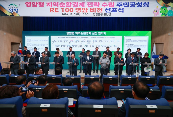 나아가 공청회 참여 39개 지역 앵커기관·기업 등은 ‘영암형 지역순환경제 실천 협약’을 맺고, 그 의지의 표명으로 퍼포먼스에도 나섰다.