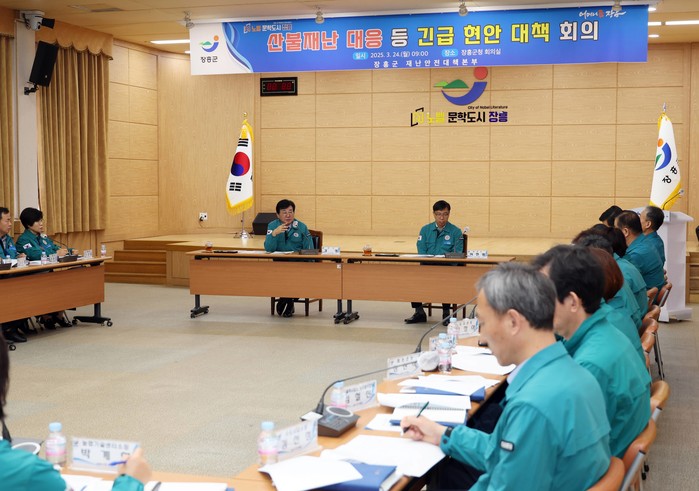 [전남=프레스뉴스] 강래성 기자= 장흥군은 24일 산불 예방 대응 사전 대책회의를 열고 산불 예방활동에 총력을 기울이고 있다.