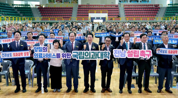 또한 노령인구 비중이 높고 농어촌 산간지역 등 의료 취약지인 전남의 국립 의과대학 설립을 촉구하는 구호 제창과 팻말 퍼포먼스도 진행해 의미를 더했다.