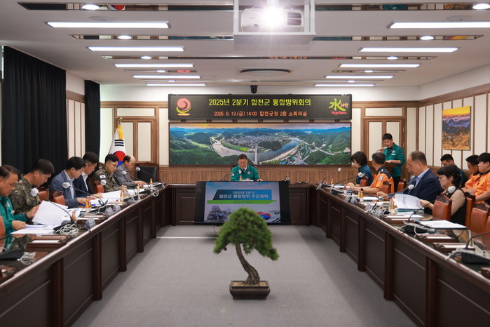 ▲합천군은 지난 13일 군청 2층 소회의실에서 ‘2025년 2분기 통합방위협의회 회의’를 열고, 민·관·군·경·소방이 참여한 가운데 지역 통합방위태세 확립 방안을 논의했다고 밝혔다. (사진=합천군) |