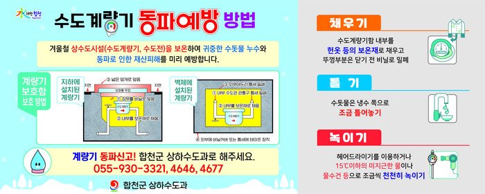 | ▲합천군은 11월 15일부터 내년 3월 15일까지 ‘동절기 한파 대비 수도계량기 동파사고 예방대책’을 추진한다고 밝혔다. (사진=합천군) |