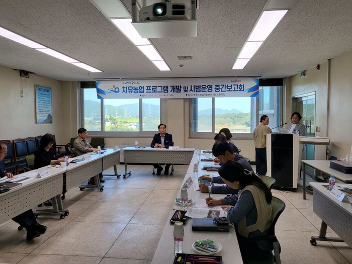 이날 보고회는 김정섭 부군수 주재로 치유농업 관련 실과장 등 10여명 명이 참석한 가운데 지역 농업·농촌 자원을 활용한 치유농업 프로그램 개발에 대한 완성도를 높이기 위하여 참석자 간 의견 공유를 위해 마련됐다.