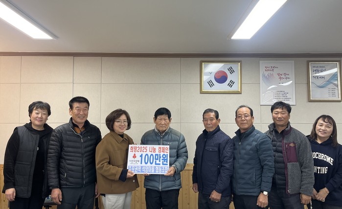 함평군 함평읍은 16일 “‘주포권역 석양마을 협동조합’이 지난 14일 지역사회를 위해 ‘희망2025 나눔캠페인’에 성금 100만원을 기탁했다“고 밝혔다.