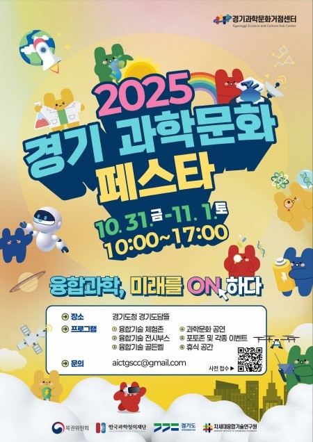 [프레스뉴스] 류현주 기자= 경기도·서울대학교 공동출연법인 차세대융합기술연구원(원장 김연상, 이하 융기원)은 경기도와 함께 오는 10월 31일과 11월 1일, 경기도청 도담뜰에서 ‘2025 경기과학문화페스타’를 개최한다.