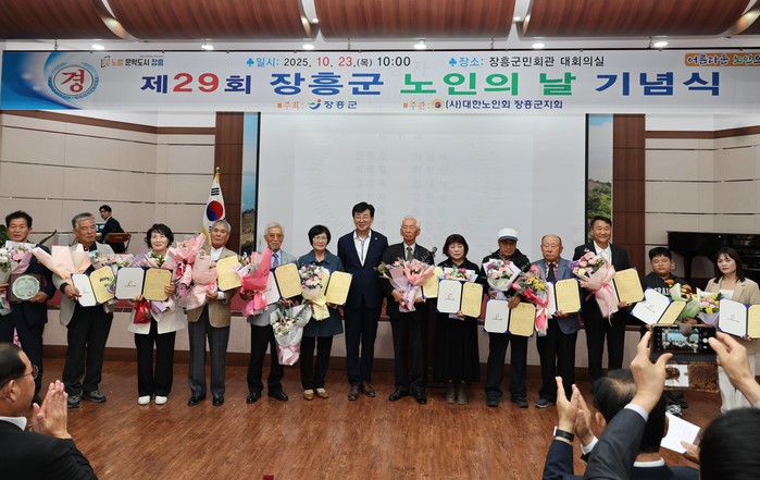 김성 군수는 “미래세대를 위한 노인의 역할을 함께 고민하고, 지역사회에 봉사하고 발전을 선도해 아이들과 어르신들의 행복한 미소가 넘쳐나는 건강한 장흥을 만들기에 앞장 서 달라”며, “군 또한 어르신들의 소득, 건강, 돌봄 등 복지정책을 적극적으로 펼쳐 나가겠다”고 말했다.