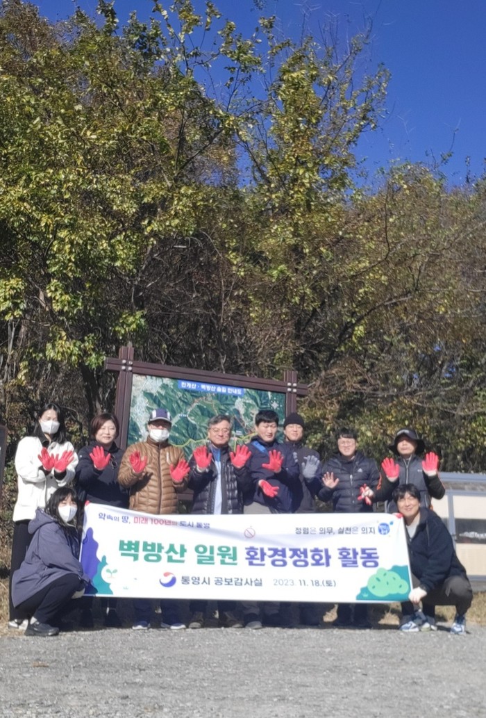 이날 참여자들은 다함께 등산로 곳곳에 방치돼 있는 쓰레기들을 수거하면서, 청렴하고 깨끗한 통영 만들기를 위한 캠페인을 실시했다.