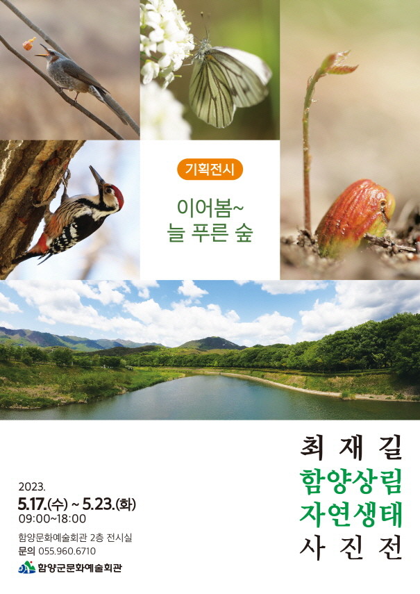 <함양상림 자연생태 사진전>은 최재길 작가가 함양에서 8년간 거주하면서 상림을 부지런히 드나들며 발아래 풀 한포기, 나무 한그루 놓치지 않고 기록하고, 촬영하고, 관찰하면서 차츰 곤충도 보이고, 새들도 보여 도감을 찾아가며 상림에 대한 자료를 자기만의 것으로 만들어낸 과정에서 상림의 풍경과 정체성, 그리고 생물의 다양성, 풀꽃, 나무, 새 등 엄선된 작품을 선정했다고 한다.