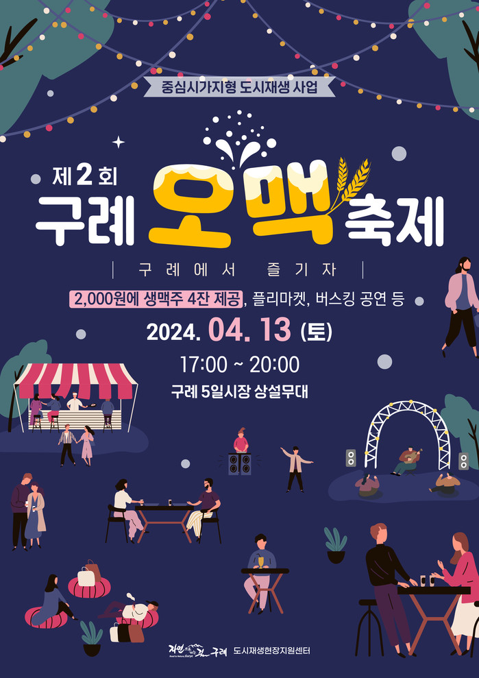 올해 축제는 카스와 협업을 통해 참여자에게 신선하고 시원한 생맥주 4잔을 2,000원에 제공한다. 참여자는 5일시장 내 청년점포 야시장을 이용해 안주 또한 가성비 있게 즐길 수 있다.