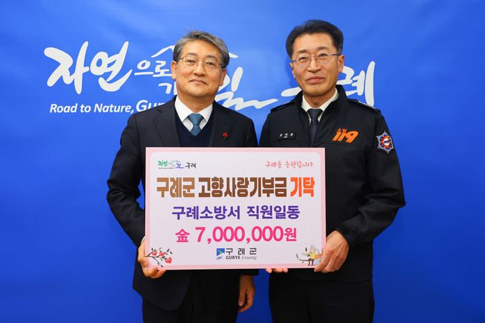 구례소방서 70여 명의 직원들은 군과의 협력 증진과 지역 상생 발전을 위한 응원의 마음을 담아 700만 원을 기부했다.
