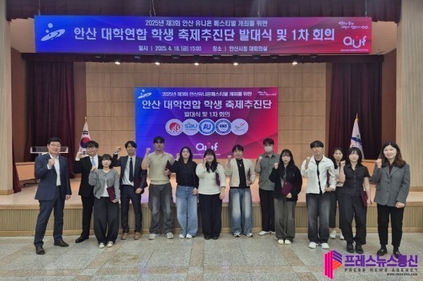 [프레스뉴스] 장현준 기자= 안산시(시장 이민근)는 지난 18일 안산시청 대회의실에서 ‘제3회 안산 유니온 페스티벌’(이하 ‘제3회 AUF’)의 성공적 추진을 위한 ‘안산 대학 연합 학생 축제추진단’(이하 ‘축제추진단’) 발대식을 개최했다고 21일 밝혔다.