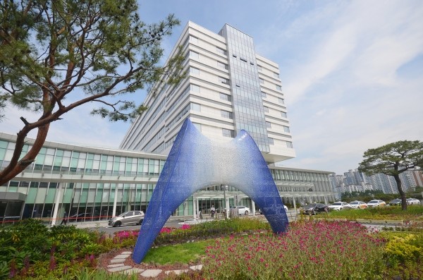 실제로 새 병원 앞 화단에는 김병진 조각가의 ‘코스모스’라는 작품이 자리 잡고 있다. ‘HOPE(희망)’라는 단어의 첫 글자 ‘H’를 형상화한 작품으로, H, O, P, E 알파벳의 파편을 모아 표현했다.