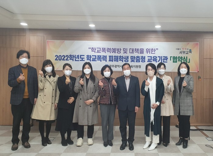 [광주=프레스뉴스] 강래성 기자= 서부교육지원청이 지난 14~16일 ‘2022학년도 특별교육·심리치료·학교폭력피해학생 맞춤형 교육기관 협약식‘을 개최했다.
