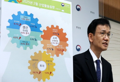 | ▲이두원 통계청 경제동향통계심의관이 31일 세종시 정부세종청사에서 2025년 2월 산업활동동향을 발표하고 있다.(사진= 뉴스1) |