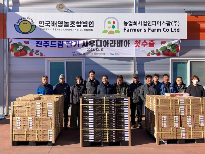 [프레스뉴스] 정호일 기자= 진주시는 지난 17일 농업회사법인 파머스팜(주)에서 사우디아라비아로 진주드림(진주시농산물 공동브랜드) 딸기 640kg을 첫 수출했다고 밝혔다.