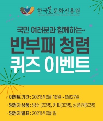 [프레스뉴스] 강동기 기자= 한국효문화진흥원은 오는 27일까지 ‘반부패 청렴 퀴즈 이벤트’를 진행한다.