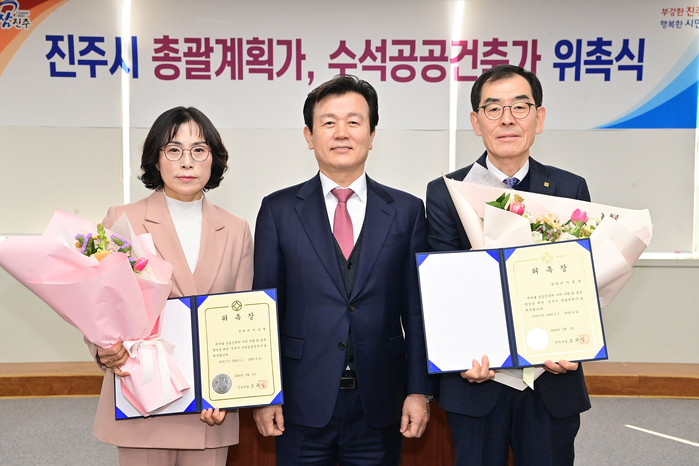 이임하는 최삼영 총괄계획가의 그간 성과를 바탕으로 새로이 위촉된 이종칠 총괄계획가와 서지영 수석공공건축가는 진주시가 추진 중인 남강변 다목적 문화센터 건립사업, 진양호 동물원 이전사업, 국가정원을 준비하는 월아산 숲속의 진주 등 다양한 프로젝트에 적극 참여할 예정이다.