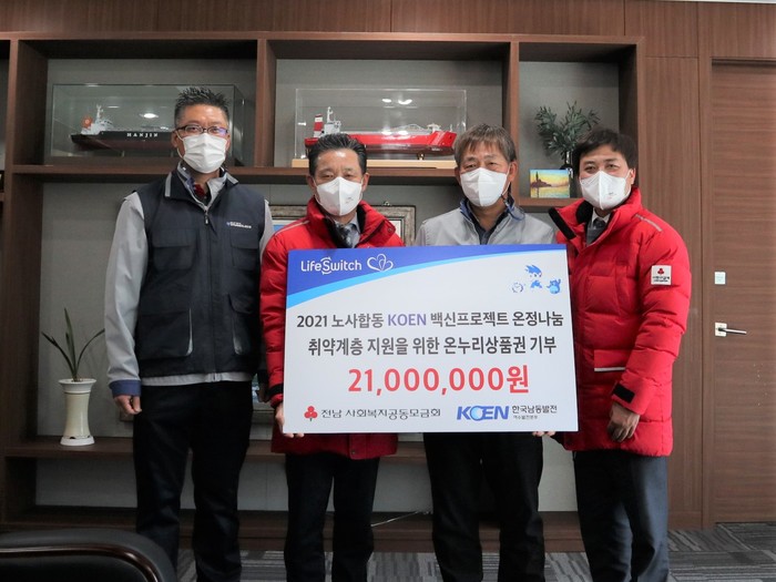 [전남=프레스뉴스] 강래성 기자= 한국남동발전(주)여수발전본부(본부장 신윤오)가 희망2022나눔캠페인 이웃돕기 성금 2,100만 원을 전남사회복지공동모금회에 전달했다.