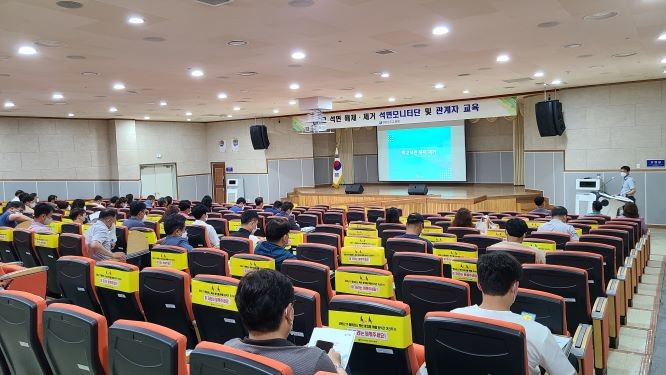 전라남도교육청은 7월 6일(수) 전라남도교육연구정보원에서 2022년 여름방학 중 석면 해체·제거 공사가 예정된 29개 교 관계자 및 석면 모니터단 100여 명을 대상으로 안전교육을 실시했다.