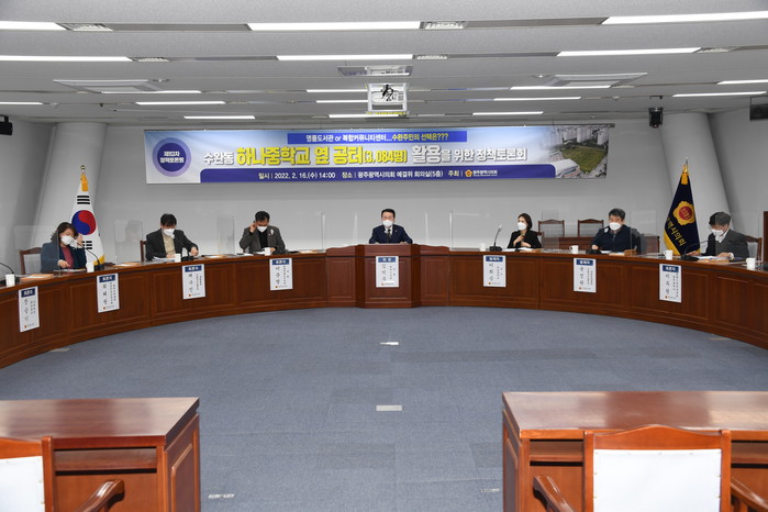 그래서 김 의원은 민의를 반영 하기 위해 지난해 10월 시정질문을 통해 이용섭 광주시장으로부터 주민들의 숙원 사업 추진 확답을 받아냈고, 나아가 2022년 본예산에 사업 추진 용역비 3억 원을 확보해 냄으로써 공터 활용방안을 위한 정책토론회를 개최하게 되었다고 추진 배경을 밝혔다.