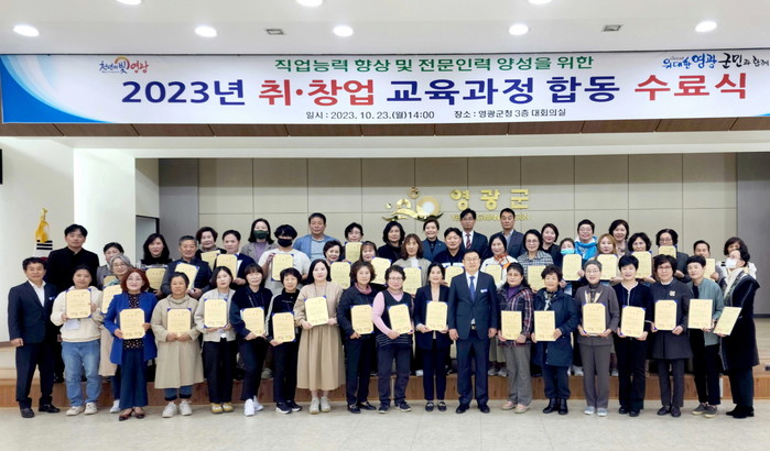 [전남=프레스뉴스] 차윤기 기자= 전남 영광군(군수 강종만)에서는 지난 23일 영광군청 3층 대회실에서‘2023년 취.창업’교육과정 이수에 따른 합동 수료식을 가졌다.