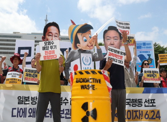 반면, 후쿠시마 원전 오염수 방류를 반대하는 사람들을 향해서는 '정치적' 음모라고 몰아 붙이곤 했다.