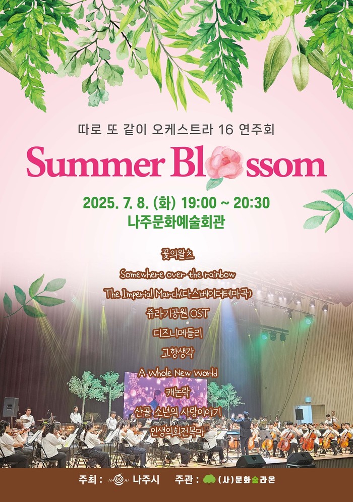 나주시(시장 윤병태)는 오는 7월 8일 오후 7시 나주문화예술회관 공연장에서 ‘2025년 따로 또 같이 오케스트라 16 정기연주회’를 개최한다고 30일 밝혔다.