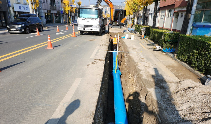 | ▲상수도관 공사 현장 사진=진주시 제공 |