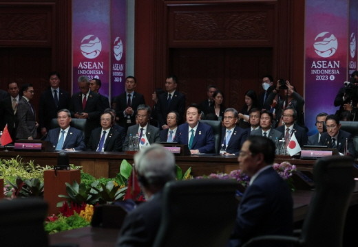 | ▲지난해 9월 인도네시아 자카르타에서 열린 아세안+3 정상회의에서 함께 자리한 리창 중국 총리, 윤 대통령, 기시다 후미오 일본 총리(왼쪽부터) 모습. (사진= 대통령실) |