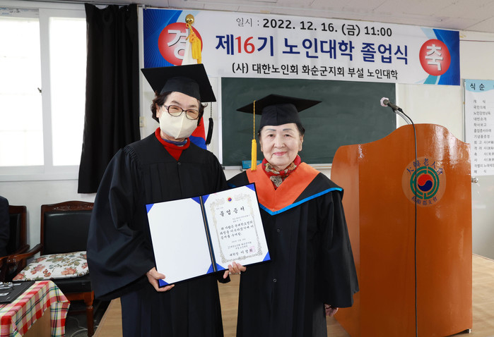 화순군(군수 구복규)에 따르면, 지난 16일 대한노인회 화순군지회(지회장 김종회)가 제16회 노인대학(학장 이정희) 졸업식을 개최했다.
