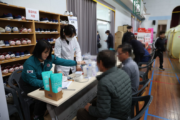 | ▲산청군 단성중학교 대피소 모습 (사진=산청군) |