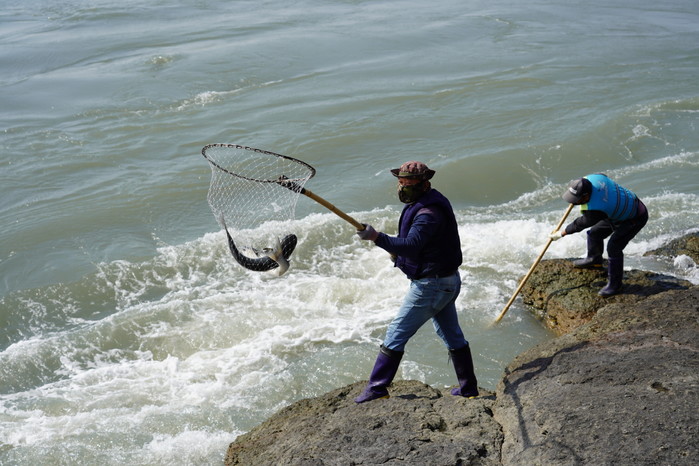 울돌목이 위치한 해남 우수영 관광지에서도 뜰채 숭어잡이가 시작됐다.