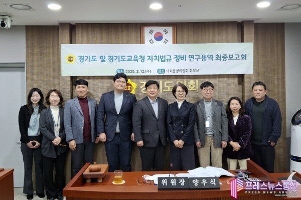[프레스뉴스] 류현주 기자= 경기도의회는 지난 12일 양우식 위원장 주관으로 ‘경기도 및 경기도교육청 자치법규 정비 연구용역 최종보고회’를 개최했다.