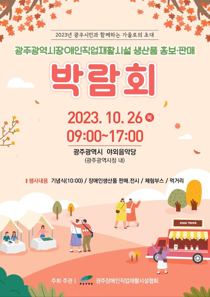 [광주=프레스뉴스] 강래성 기자= 광주광역시(시장 강기정)는 광주장애인직업재활시설협회와 함께 26일 시청 야외음악당에서 ‘2023년 장애인직업재활시설 생산품 홍보‧판매 박람회’를 개최한다.