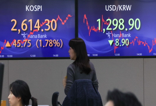 | ▲20일 서울 중구 하나은행 명동점 딜링룸 전광판.(사진= 뉴스1) |