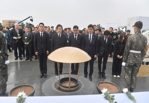 이날 추념식에는 이재명 더불어민주당 대표, 윤재옥 국민의힘 원내대표, 인요한 국민의미래 선거대책위원장을 비롯해 윤영덕·백승아 더불어민주연합 공동대표, 김준우 녹색정의당 상임선대위원장, 오영환 새로운미래 총괄상임선대위원장, 천하람 개혁신당 총괄상임선대위원장, 조국 조국혁신당 대표 등이 참석했다.