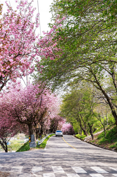 도로를 따라 이어진 벚나무는 꽃망울을 터뜨리며 두 번째 봄을 알리고 있다.