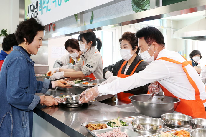 이날 박 시장과 배우자 오영순 여사는 급식 봉사에 직접 참여해 거동이 불편한 장애인들에게 점심 식사를 제공하고, 장애인들의 애로사항을 청취하는 등 소통의 시간을 함께 가졌다.