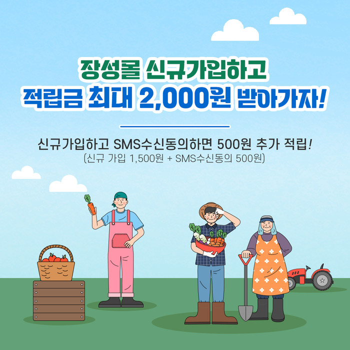 | ▲ 장성몰 신규 가입자에게는 최대 2000원의 적립금 혜택이 제공된다 (사진제공=장성군) |