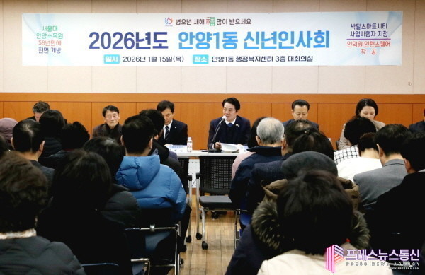 [프레스뉴스] 장현준 기자= 안양시(시장 최대호)는 이달 15일 안양1동을 시작으로 내달 10일까지 31개 동의 주민들과 함께하는 ‘2026년 동 신년인사회’를 개최한다고 밝혔다.