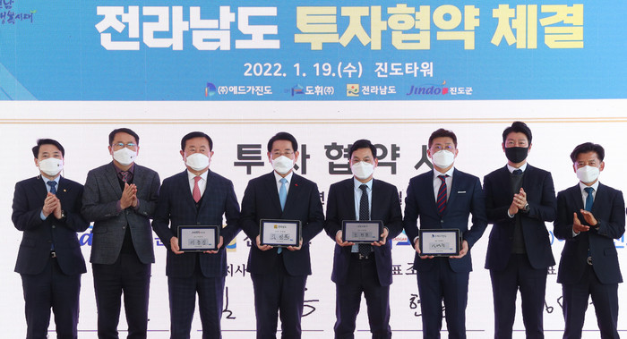 [전남=프레스뉴스] 강래성 기자= 전라남도는 19일 진도타워에서 도휘㈜의 자회사인 ㈜에드가진도와 2천억 원 규모 관광 개발사업을 추진키로 하고 새해 첫 투자협약을 했다.