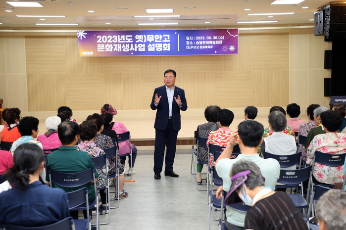 [전남=프레스뉴스] 강래성 기자= 전남 무안군(군수 김산)은 지난 30일 무안 승달문화예술회관 소강당에서 ‘(옛)무안고 문화재생사업 주민홍보회’를 가졌다고 밝혔다.