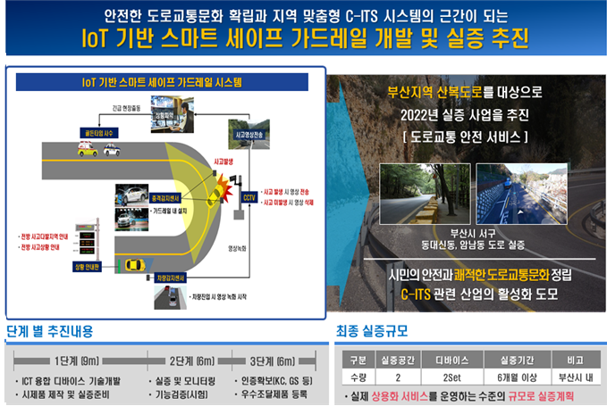 이번 공모사업 선정으로 부산시는 총사업비 7억 500만원 중 국비 5억 2,500만원을 확보하여 2년간(21~22년) ‘IoT기반 스마트 세이프 가드레일 시스템’을 개발할 계획이다