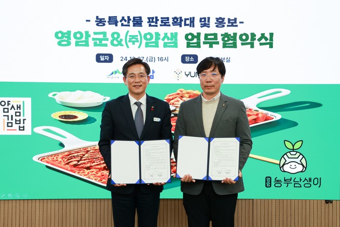 특히, ㈜얌샘은 주메뉴인 김밥에 영암 쌀을 사용하고, 영암의 우수 농특산물을 활용해 새로운 분식 메뉴를 개발해 판매하기로 했다.