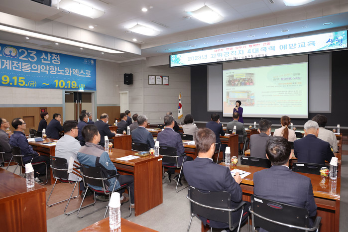 | ▲ 산청군 고위공직자 4대폭력 예방교육 모습(사진=산청군) |
