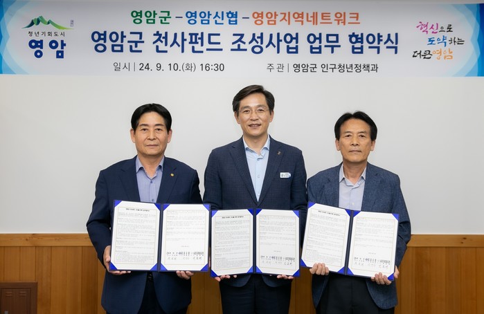 지난해 9월 천사펀드 조성과 운영을 위해 영암군과 영암신협, 사회적협동조합 영암지역네트워크가 업무협약을 맺었다.
