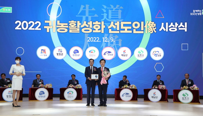 귀농 활성화 선도인상은 농협이 농업 발전과 귀농 활성화를 위하여 적극적인 귀농정책을 펼치는 지자체장에게 수여하는 상으로, 전국에서 8개 시군을 선정해 시상한다.