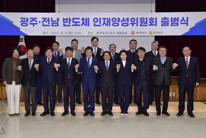 광주시와 전남도는 6일 광주테크노파크에서 강기정 광주시장과 박창환 전남도 정무부지사, 양향자 국회의원, 정성택 전남대 총장 등 20여 명이 참석한 가운데 ‘광주.전남 반도체 인재양성위원회’ 출범식을 가졌다.